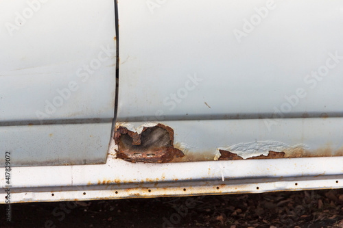 corroded, rust, car, corrosion, metal, reagent, chemistry, petersburg, russia, damage, road, snow, ice, hole, body, steel, part, automobile, bottom, rusted, rust-eaten, stain, destruction