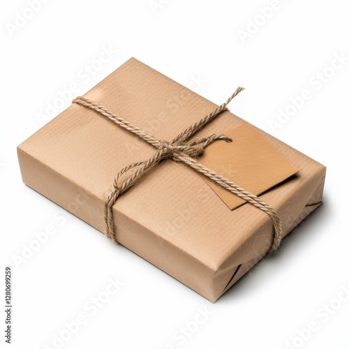 Rustic Brown Paper Package Tied with Jute Twine and Blank Tag for Message and Occasion Delivery