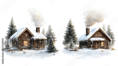 Rustic Cabins in Snowy Winter Wonderland