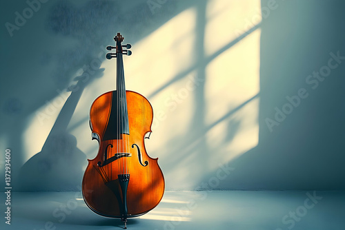 Rustic Cello Leaning Against Textured Wall With Sunlight And Shadows in an indoor studio setup featuring warm and cool tones