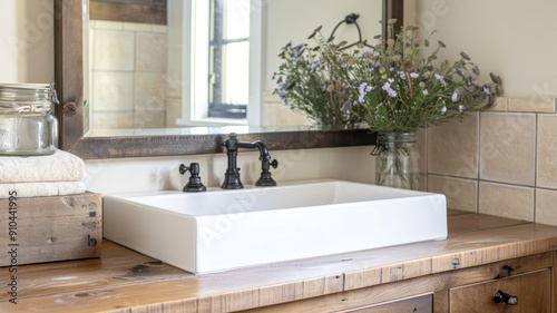 bathroom, white, sink, wooden, vanity, interior, design, wall, bathtub, shower, modern, room, floor, three-dimensional, minimalist, marble, wood, house, bathe, luxury, plant, minimal, farmhouse, reclaimed, barn, black, iron, fixture, large, rectangular, mirror, frame, warm, welcoming, ambience, rustic, chic, style, light, beige, tile, mason, jar, fresh, wildflower, stylish, elegant, cosy