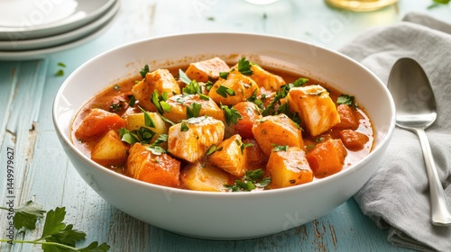 fish, soup, vegetable, stew, bowl, potato, carrot, broth, fresh, dish, meal, lunch, dinner, healthy, comfort, homemade, hot, tasty, receipe, cooked, plate, delicious, spicey, herb, rustic