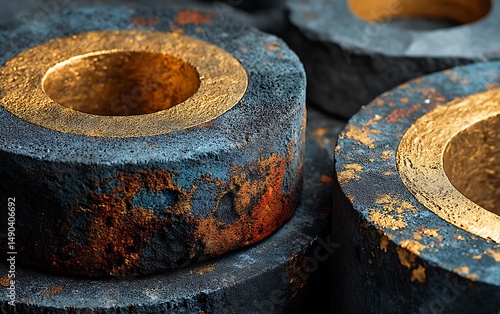 concrete, ring, gold, rustic, texture, background, design, art, abstract, decoration, circle, pattern, industrial, modern, style, home decor, interior design, architecture, material, surface, craft, hand-made, object, detail, closeup, macro, photo, stylish, elegant, luxury, metallic, grunge, vintage, dark, grey, blue, brown, copper, stone, abstract background, advertising, future