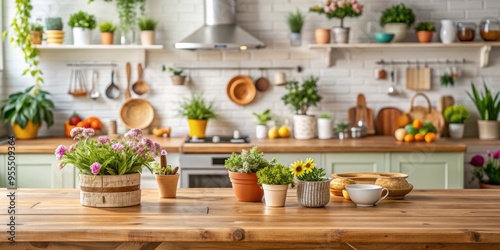Rustic Kitchen Tabletop with Plants and Flowers, Kitchen Decor , Indoor Plants , Home Design , Cozy Interior