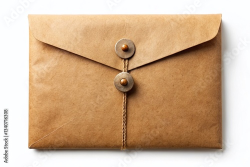 Rustic Kraft Paper Envelope Folder with Button & String Closure - Isolated White Background