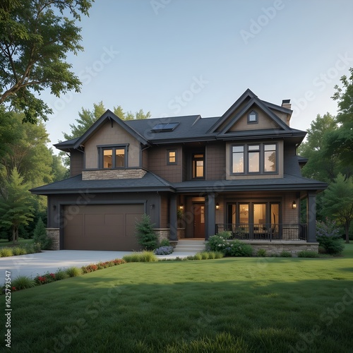 Rustic Modern Farmhouse Exterior with Lush Green Landscape