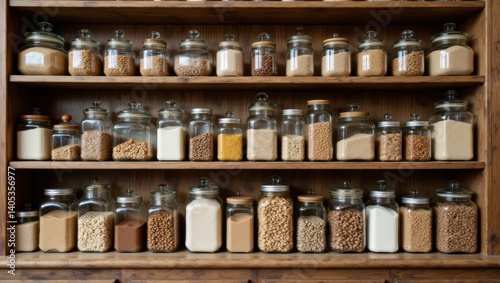 Rustic Pantry Shelf Displaying Bulk Goods Cozy Home Kitchen Food Organization Wooden Environment Aesthetic Viewpoint