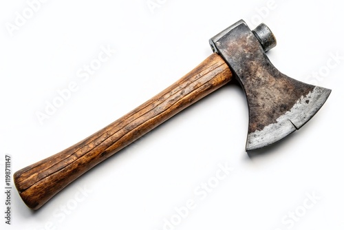 tomahawk, axe, hatchet, rustic, minimalist, tool, weapon, vintage, antique, isolated, white background, metal head, craftsmanship, carpenter's shop, lumberjack, outdoors, survival, camping, hunting, history, heritage, carpenter's shop, blade, sharp, aged, weathered, texture, detail, object, equipment, instrument, implement, artifact, photo, image, picture, illustration, graphic, design element, background, isolated object, single object