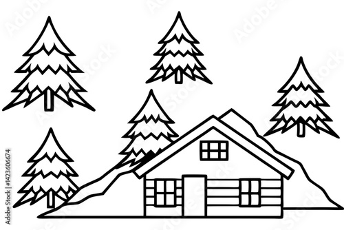 Rustic Winter Cabin Line Design