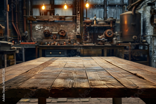rustic, wooden, table, industrial, workshop, tool, equipment, craftsmanship, vintage, nostalgic, reclaimed, material, traditional, rough, weathered, texture, grain, earthy, metallic, ambient, lighting, warm, natural, scene, industry, concept, design, background