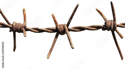 Rusty barbed wire creating dangerous barrier on transparent background