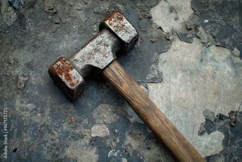 Rusty Hammer with Wooden Handle on Weathered Concrete