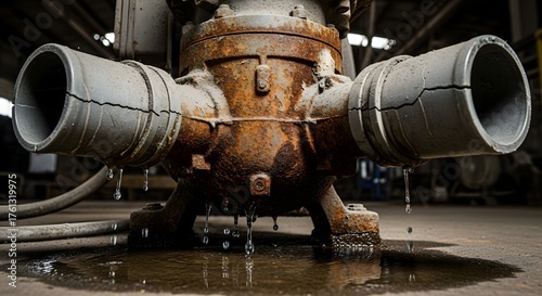industrial, pump, machinery, rust, rust-eaten, corrosion, corroded, leaking, leak, water, dripping, pipe, factory, manufacturing, old, worn, deterioration, equipment, engineering, metal, grunge, damage, defect, repair, maintenance, problem, issue, bankruptcy, breakdown, industrial plant, workshop, production, facility, hazard, puddle, floor, wet, neglected, obsolete, vintage, infrastructure, crisis