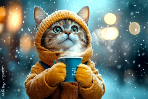 cat, humanity, winter, environment, freezing, pet, kitten, clothes, advertisement, struggling, marketing, cold, chill, aromatic, harsh, tea, desolate, pained, hot beverage, tabby, message, newspaper, landscape, fluffy, flavorful, poster, depressed, signage