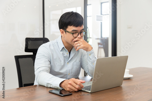 sad depression serious people from work,study stress problem.asian man feeling tired suffering using computer working work place.concept global economic,health problems