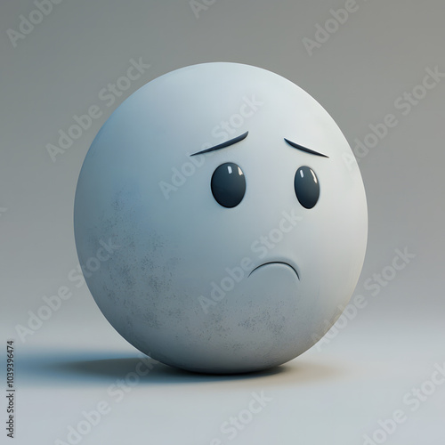 sad, face, three-dimensional, worried, expression, emoticon, character, emotion, digital artwork, neutral, background, blue, monday, tone, ball-shaped, sphere, isolated, minimalistic, depression, melancholy, anxiety, mood, facial, cartoon, simplicity, lonely, abstract, clean, futuristic, symbolic, concept, feeling, round, eye, three-dimensional, disappointment, clip art, gesture, ball, stressed