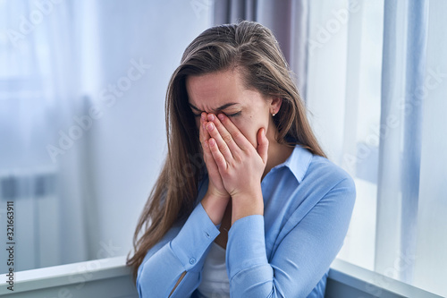 Sad lonely crying woman with life difficulties and mental emotional problems during depression