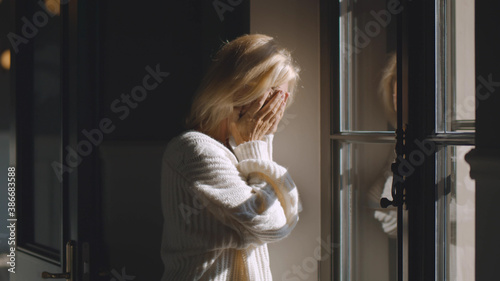 sad, mature, caucasian, woman, looking, window, indoor, portrait, upset, senior, lady, feeling, anxious, exhausted, standing, home, hospital, older, middle, aged, old, adult, grandmother, widow, worried, mood, morning, nostalgia, memory, mental, person, pensive, lonely, dementia, lost, depressed, thinking, thoughtful, thought, disappointed, serious, psychological, problem, health, unhappy, disease, distressed, bruised, crisis, sleepy
