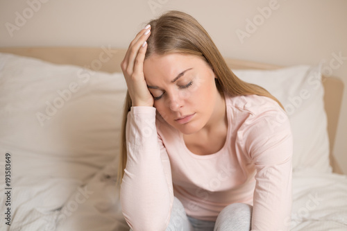 woman, depression, anxiety, worried, sitting, bed, insomnia, waking up, loneliness, sorrowful, morning, solitude, exhaustion, frustration, hopelessness, contemplation, problem, panicked, sleepy, despair, displeased, distraught, emotional stress, cephalalgia, bedtime, bedchamber, irritation, messy, pajama, young adult, missy, dawn, bedding, blonde hair, caucasian, female, home, horizontal, indoor, one person, resting