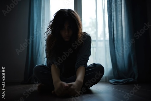 woman, depressed, depression, sad, unhappy, lonely, female, home, young, girl, bed, problem, room, stress, stressed, person, sitting, alone, sorrowful, adult, black, beautiful, bedchamber, cephalalgia, adolescence, anxiety, bedchamber, confusion, cry, crying, curtain, despair, disappointment, disorder, elegant, emotion, expression, fear, feeling, floor, frustration, grief, horizontal, disease, lady, loneliness, loss, mental, mysterious