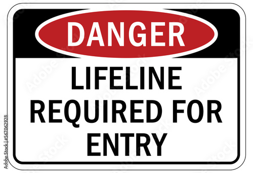 Safety harness, belt and lifeline sign and labels lifeline required for entry