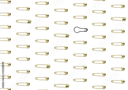 safety pin, pattern, different, concept, abstract, art, background, black, creative, decoration, decorative, design, element, geometric, gold, graphic, illustration, isolated, line, many, modern, object, repeat, shape, style, wallpaper, white