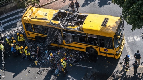 Safety protocols for school bus accidents in Brazil. visible safety instructions for kids.