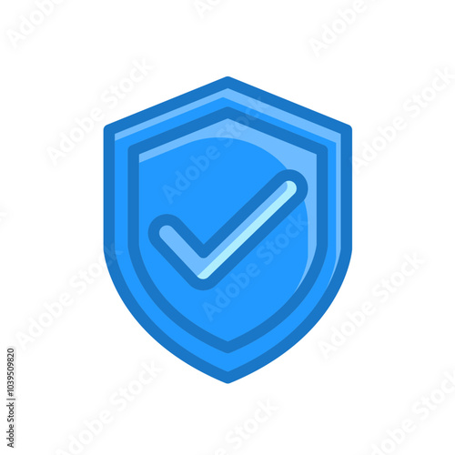 safety shield check mark perspective . Blue symbol security safety icon. Checkmark in minimalistic style. vector illustration. white background