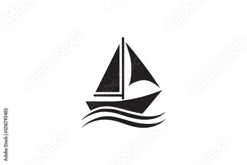 Sailboat silhouette vector illustration in black and white, set against a white background