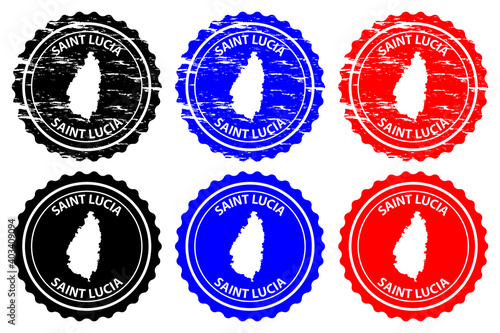 Saint Lucia - rubber stamp - vector, Saint Lucia island map pattern - sticker - black, blue and red