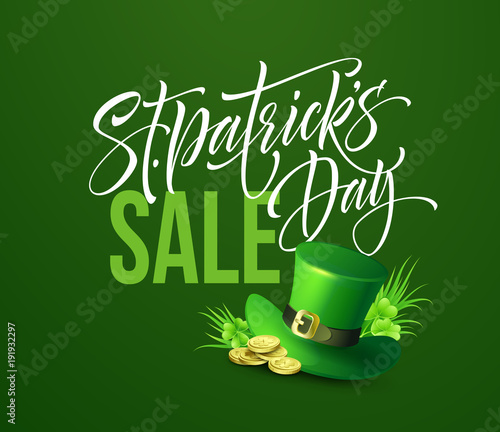 Saint Patricks Day Sale poster. Lettering banner template. Vector Illustration
