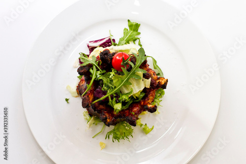 salad, food, plate, healthy, green, meal, fresh, dinner, vegetable, lettuce, diet, tomatoes, vegetable, dish, cookery, lunch, delicious, epicure, cheese, eatery, vegetarian, white, red, isolated