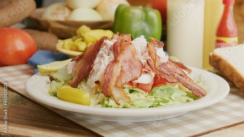 food, salad, meal, bacon, dinner, meat, dish, plate, vegetable, rice, cookery, lunch, epicure, delicious, pepper, seafood, healthy, lettuce, fish, tomatoes, fresh, fried, diet, vegetable, eatery
