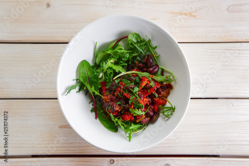 Salad with red beans, paprika and sun dried tomatoes