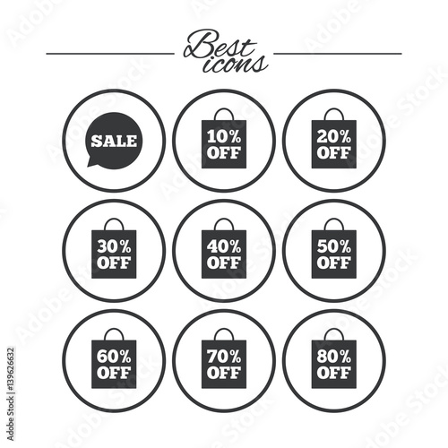 discount, sale, special, offer, off, coupon, market, best, price, tags, percent, deal, clearance, shopping, business, speech, bubble, reduction, seasonal, chat, bag, pursed, ten, 20, 40, retail, 50, 60, 70, 80, icon, flat, signs, symbol, vector, simple, round, buttons, clean, classic, design, graphic, art