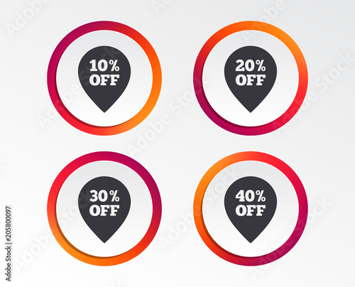 Sale pointer tag icons. Discount special offer symbols. 10%, 20%, 30% and 40% percent off signs. Infographic design buttons. Circle templates. Vector
