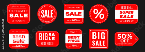 promotion, red, sticker, emblem, label, isolated, advertising, tags, sale, badge, offer, best price, discount, special, shape, text, promo, typography, announcement, special offer, business, iridescent, shopping, element, stamp, bright, seal, vector, modern, graphic, illustration, design, web, digital, set, collection, buttons, buy, shop, retail, signs
