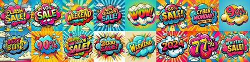 Sale stickers pop art style. AI generated illustration