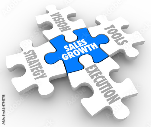 Sales Growth Puzzle Pieces Vision Strategy Tools Execution
