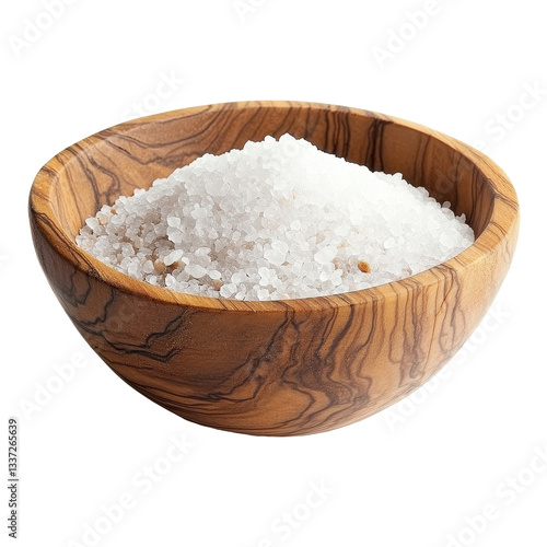 Salt in a wooden bowl on a Transparent background creating a natural and organic kitchen atmosphere, salt in wood bowlisolated on PNG background