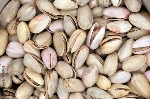 Salted pistachios close up