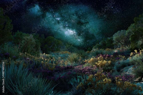 San Diego's native desert vegetation under a serene night sky, illustrated with space for poetic text