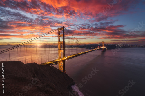 bridge, sunset, water, sky, river, sea, bay, frisco, architecture, golden gate bridge, city, ocean, sun, suspension, sunrise, gold, landmark, california, landscape, gate, lisboa, dusk, travel, road, cloud, us, america, north america, colourful, artificial light