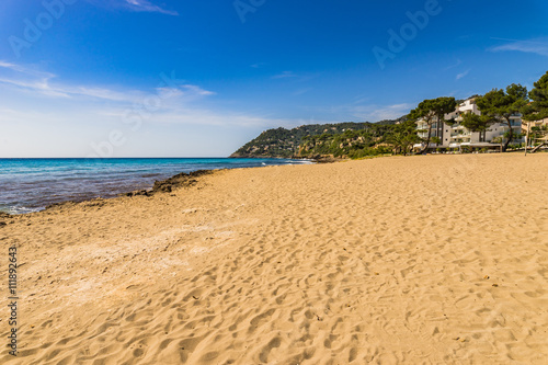 sandy shore, shore, sea, sand, beach, vacation, summer, vacation, island, mediterranean sea, spain, majorca, coast, mountain, hill, building, view, littoral, spanish, beach vacation, nobody, bay, travel, travel, destination, south, europa, tour tourism