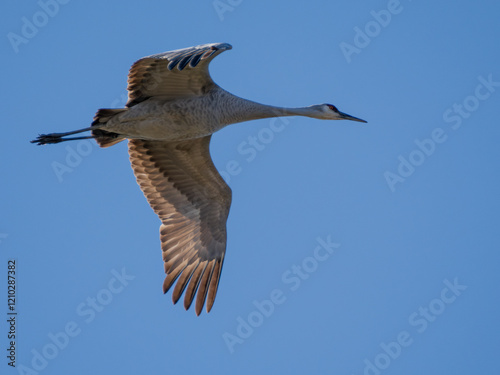 fly, flight, flying, fly up, soaring, wing, wing, blue, sky, sandhill crane, crane, grey, grey, red, big, bird, bird, birding, birding, ornithology, aves, avian, feather, feather, wild, wildlife, animal, animal, nature, beak, bill, north america, fauna, outdoors