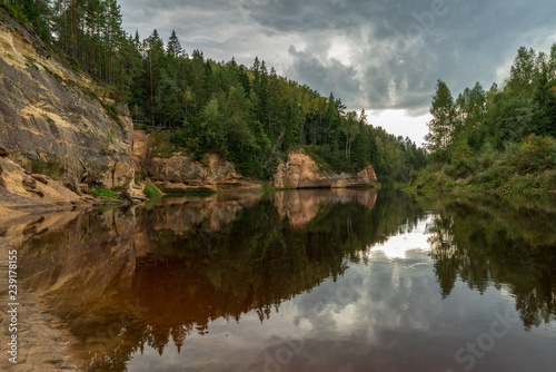 landscape, nature, tree, cliff, daylight, environment, lake, latvia, mountain, no one, outdoors, park, pool, red, river, river bank, sandstone, scenic, sky, stock, stream, summer, holiday maker, trail, travel, water, wood