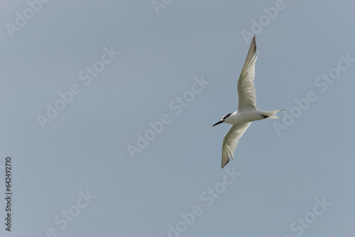 Sandwich Tern Thalasseus Sterna sandvicensis in a typical coastal habitat