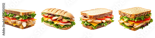 Sandwich with chicken isolated on transparent background, PNG, Set of