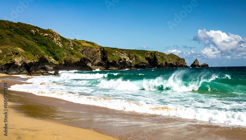 beach, wave, ocean, coast, cliff, sand, water, sea, sky, sun, nature, landscape, coastal, scenic, summer, travel, beautiful, picturesque, tranquil, serenity