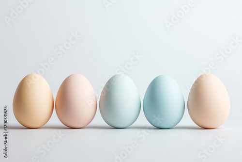 Sanfte Pastell-Eier in harmonischer Anordnung auf hellem Hintergrund